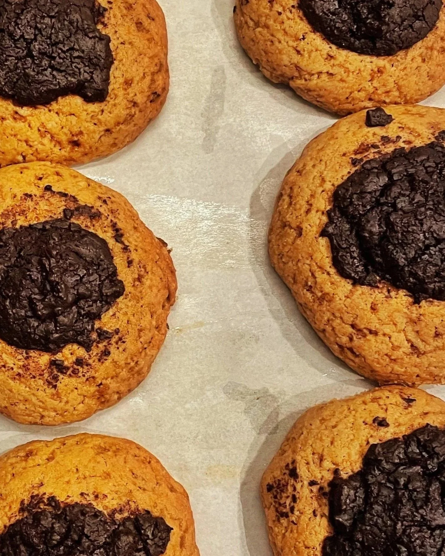According to Ayurveda, the warming and grounding qualities of whole wheat flour and khand help anchor the restless energy of vatta. The oven's warmth, the dough's soft, delicate texture, and the subtle bitterness of dark chocolate come together to create a treat that balances indulgence with mindfulness.